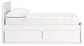 | Details | Includes headboard, panels, rails, roll slats and 2 side storage drawers, Made with engineered wood (MDF/particleboard/plywood) and decorative laminate for the right balance of affordability and durability, Solid white finish, Decorative laminate replicates natural or man-made material surfaces with consistent color, pattern and texture, 2 smooth-gliding storage drawers with ball-bearing side glides; vinyl-wrapped sides and back for durability, Bed does not require additional foundation/box spring; accommodates most zero clearance adjustable bases with the addition of a bunkie board, Mattress available, sold separately, Assembly required | |