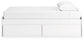 | Details | Includes panels, rails, roll slats and 4 side storage drawers, Made with engineered wood (MDF/particleboard/plywood) and decorative laminate for the right balance of affordability and durability, Solid white finish, Decorative laminate replicates natural or man-made material surfaces with consistent color, pattern and texture, 4 smooth-gliding storage drawers with ball-bearing side glides; vinyl-wrapped sides and back for durability, Bed does not require additional foundation/box spring; accommodates most zero clearance adjustable bases with the addition of a bunkie board, Mattress available, sold separately, Assembly required | |