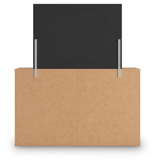 Sharlance Queen Upholstered Panel Bed with Mirrored Dresser
